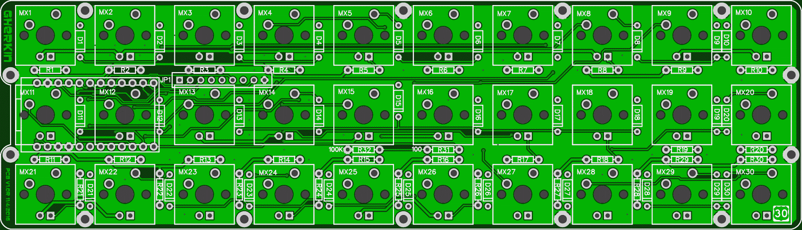 | Gateron milky white housings dyed green with RIT Emerald Green dye. They are very dark. You can see the brown jumper wire to fix the missing trace. |