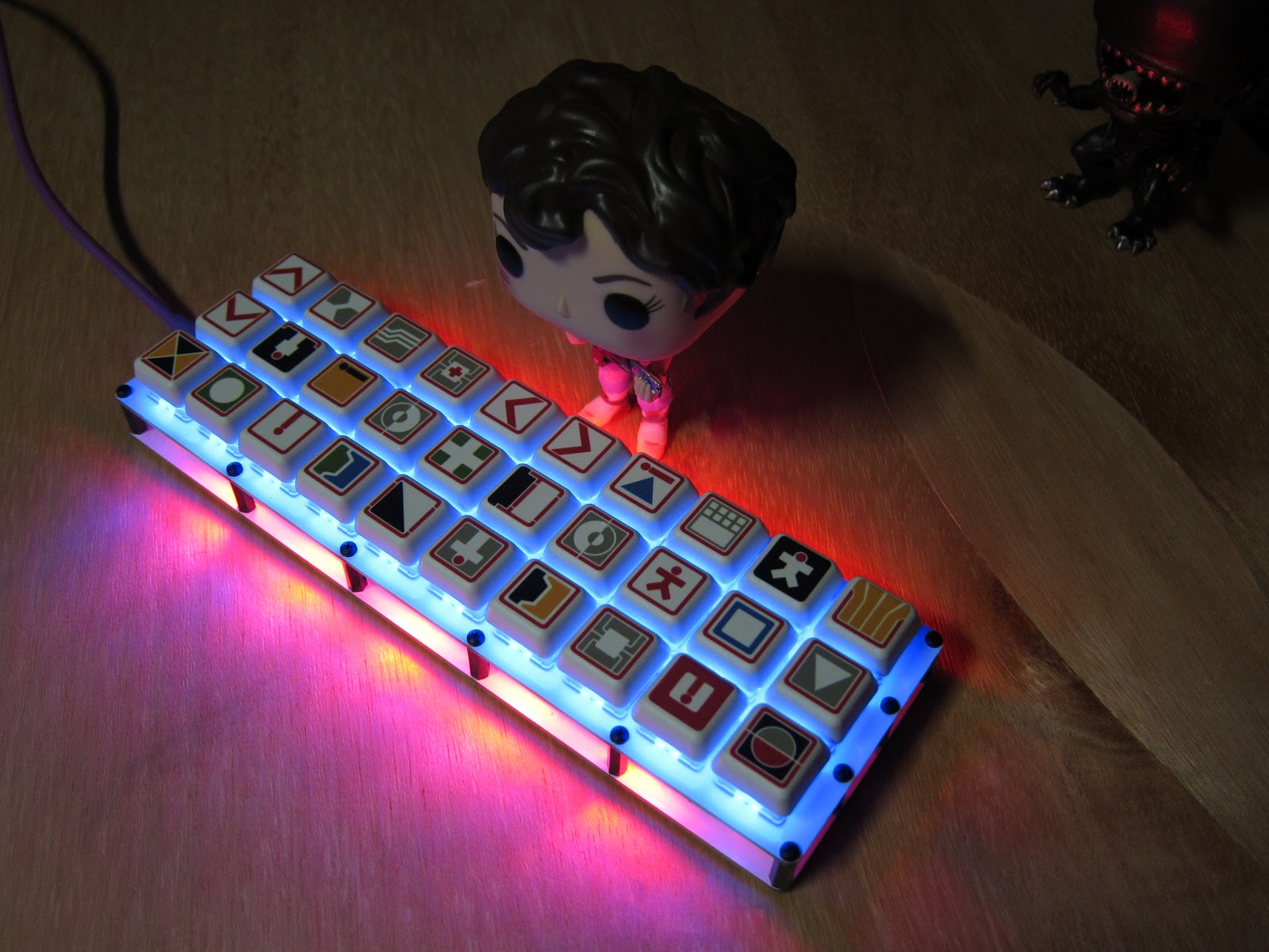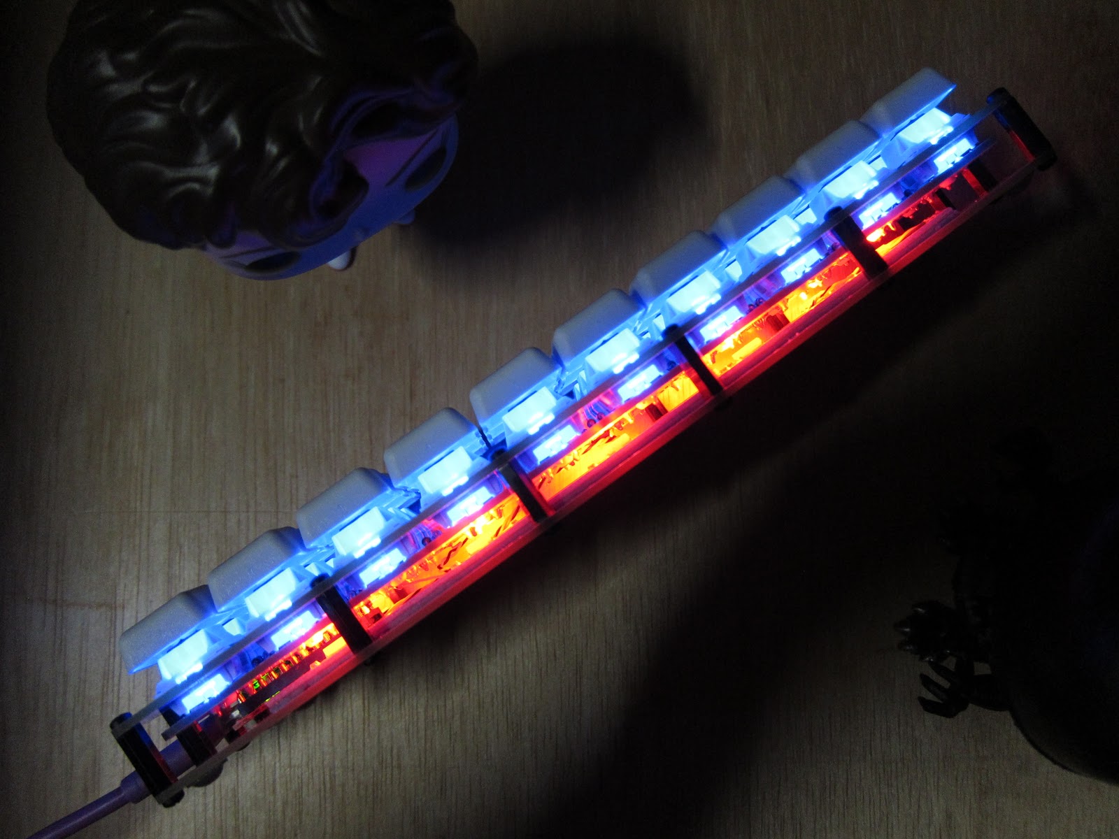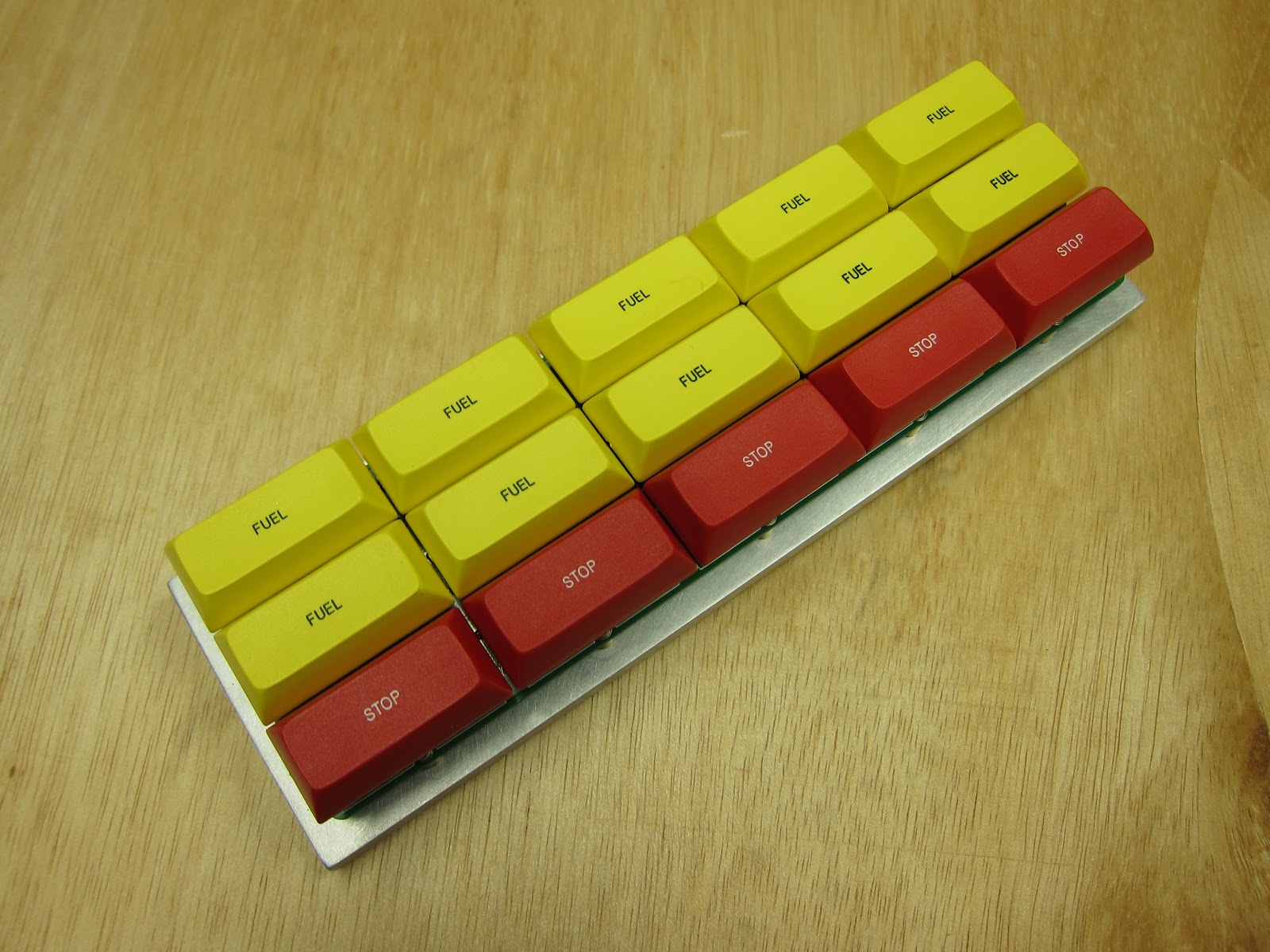 Using the modified keycaps that were cut down with a Dremel cut off wheel.