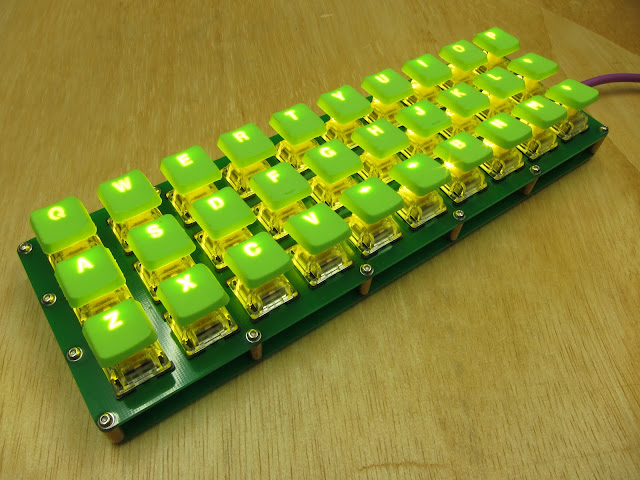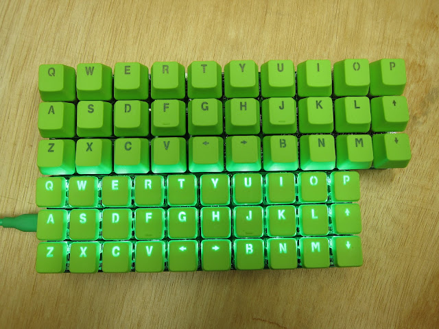 Typing on this is weird. It feels very cramped, it may be different with a different style keycap. I will try a set of cut down DSA keycaps which has more space between the keys. It is much better than the microswitches on the Flanck.
